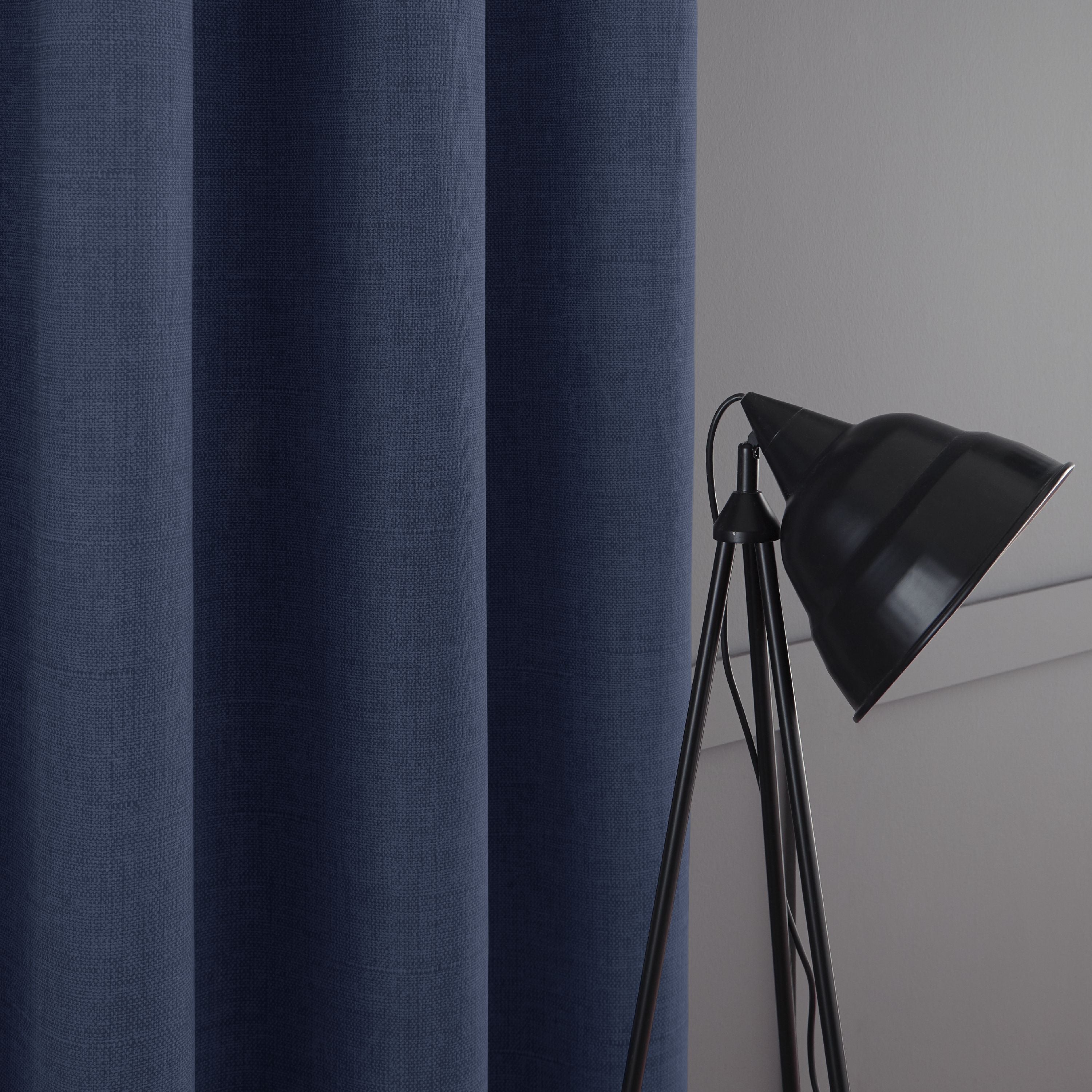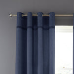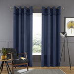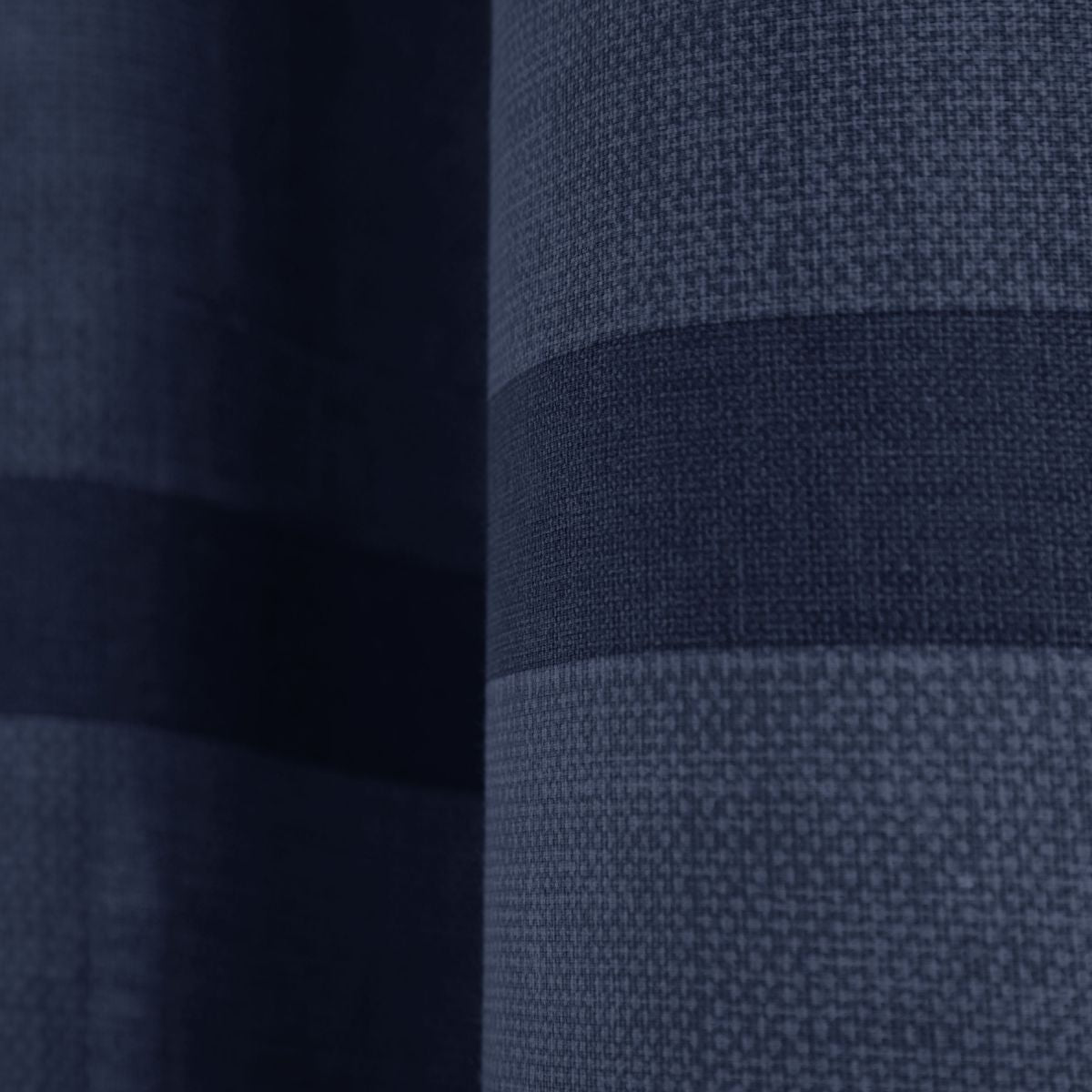 Elegantes y versátiles, estas cortinas con una sutil textura tejida en un suave tono azul marino, con un borde en un tono tierra más profundo, se integran fácilmente en cualquier estilo de decoración.