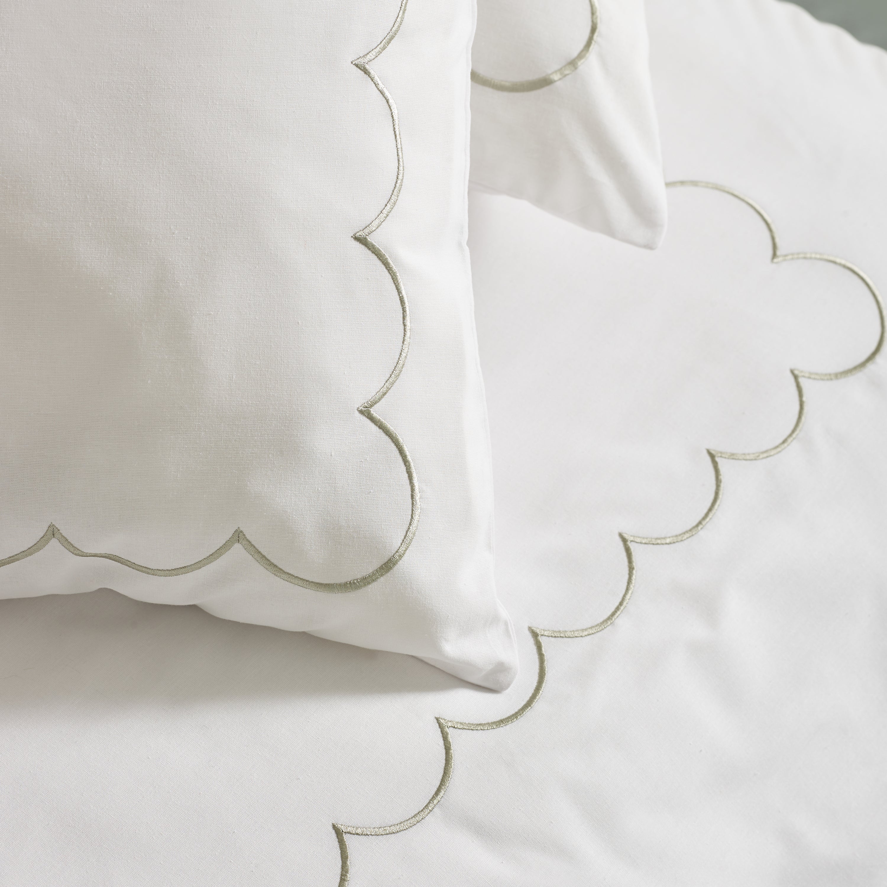 Conjunto de fundas nórdicas con borde de vieiras, blanco/verde