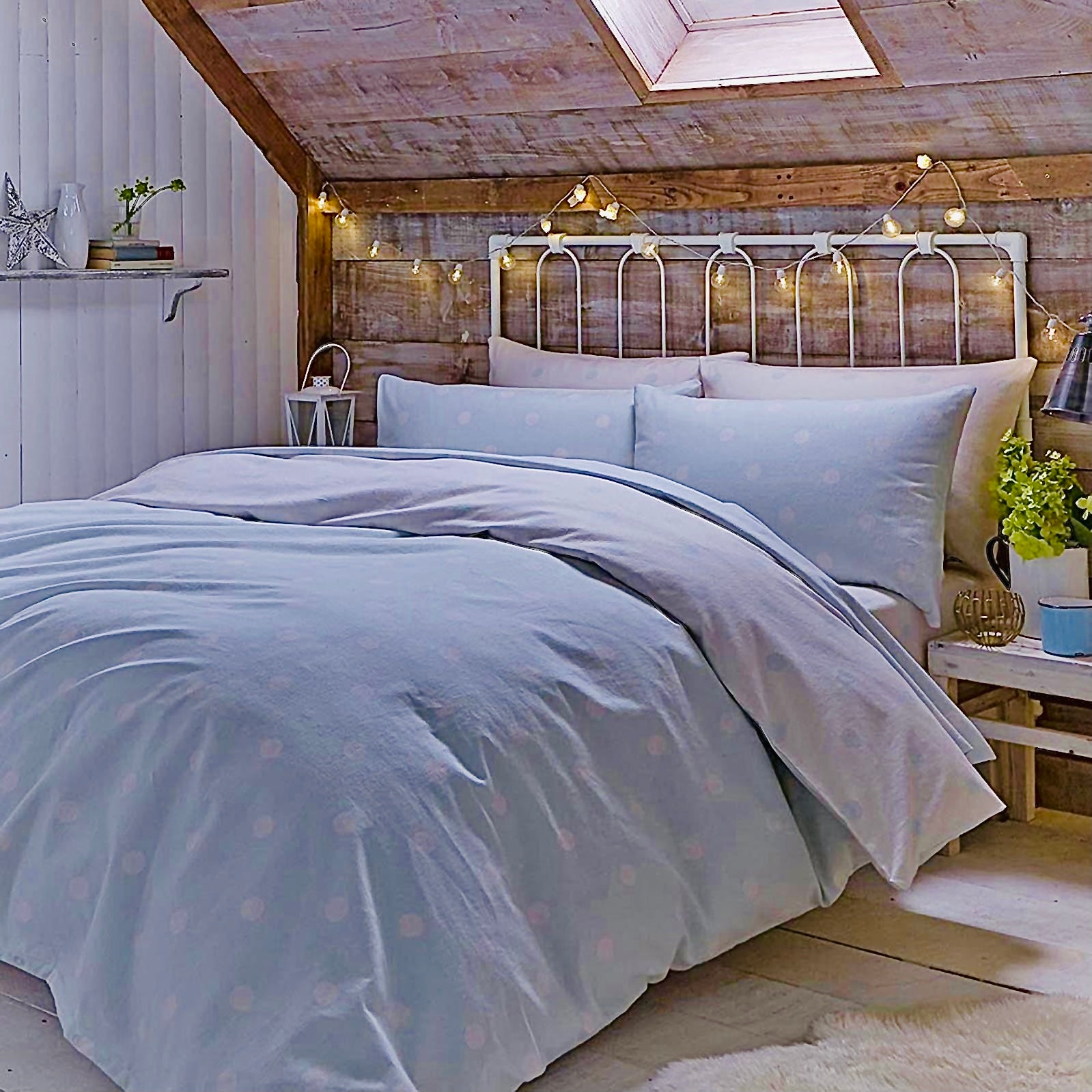 Lunares Juego de Funda de Edredón, 100% Algodón Cepillado, Verde Azulado Claro
