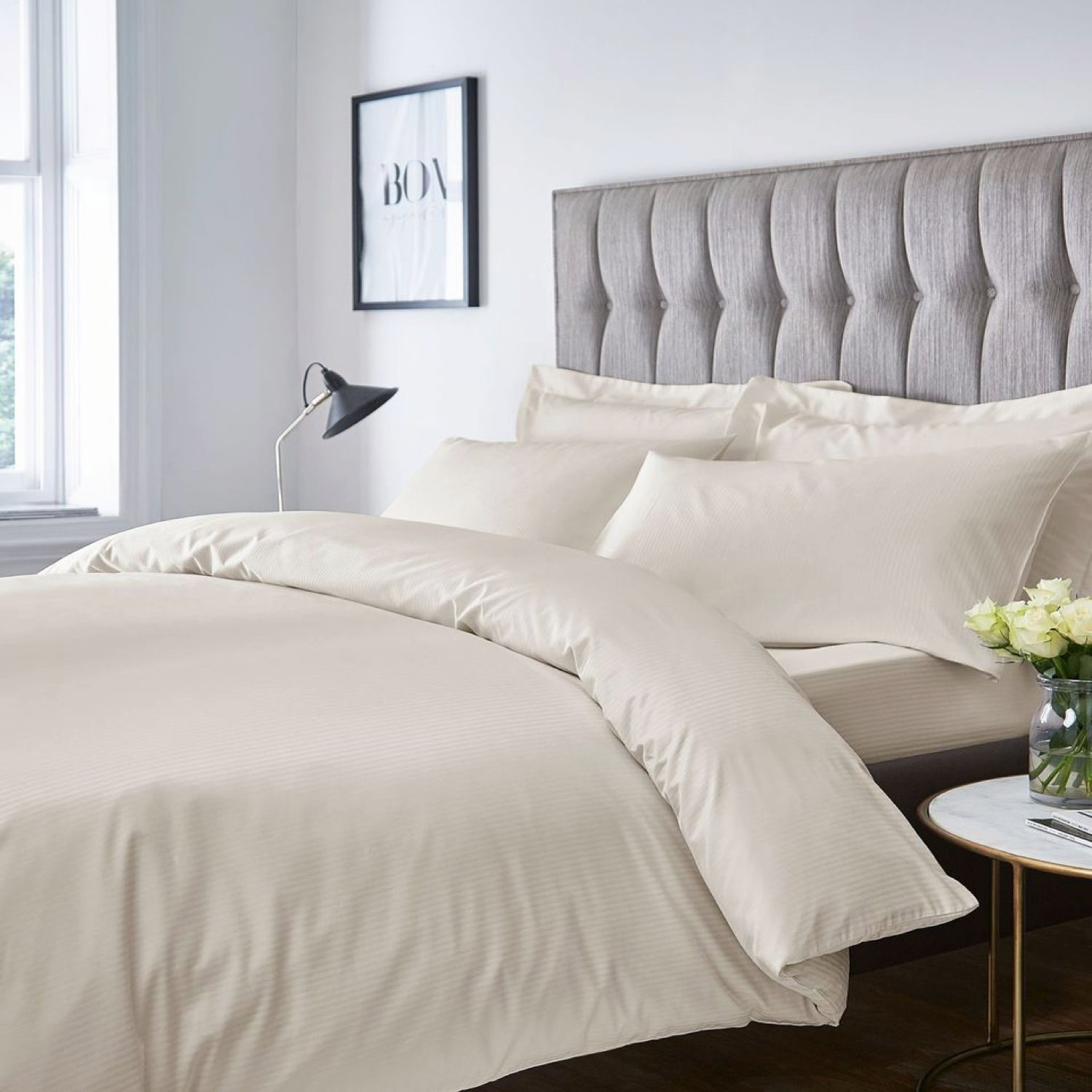 Juego de fundas nórdicas con rayas satinadas de 300 hilos, color crema.