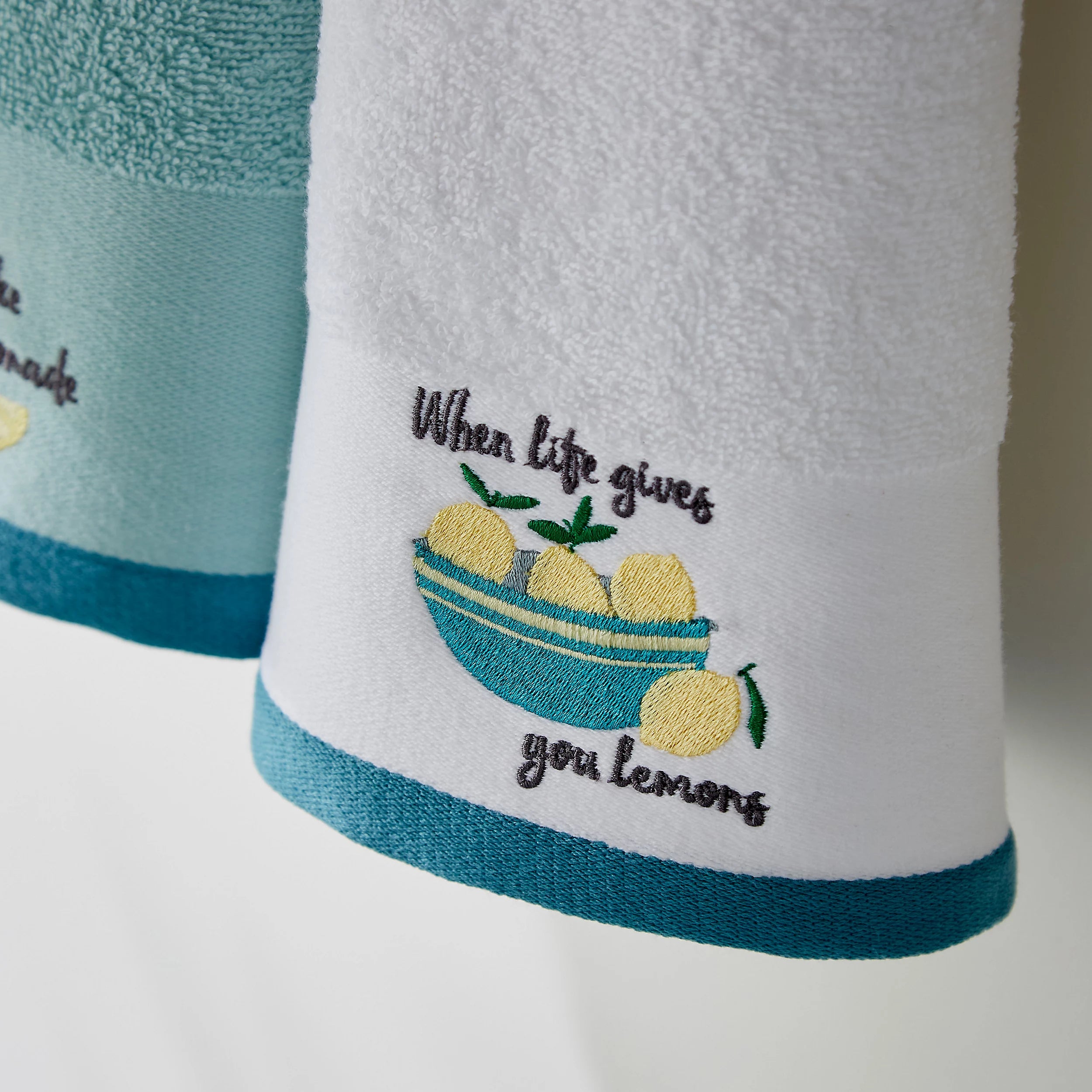 ¡Secar los platos será pan comido con este pack de 4 paños de cocina! Incluye dos diseños lisos y dos con bordes bordados con motivos cítricos, como cuencos de frutas y botellas de limonada. Todos son súper suaves y absorbentes, ideales para limpiar tanto pequeños como grandes derrames.