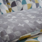 Creando energía y movimiento, este diseño retro de círculos, bloques y texturas, inspirado en estampados modernos de mediados de siglo, está en un fabuloso colorido a la moda de ocre, azul celeste y gris con un reverso de mini impresión plateada grisácea en contraste. Creado con poliéster reciclado de fácil cuidado y algodón suave de origen responsable, mezclados juntos para el uso diario.