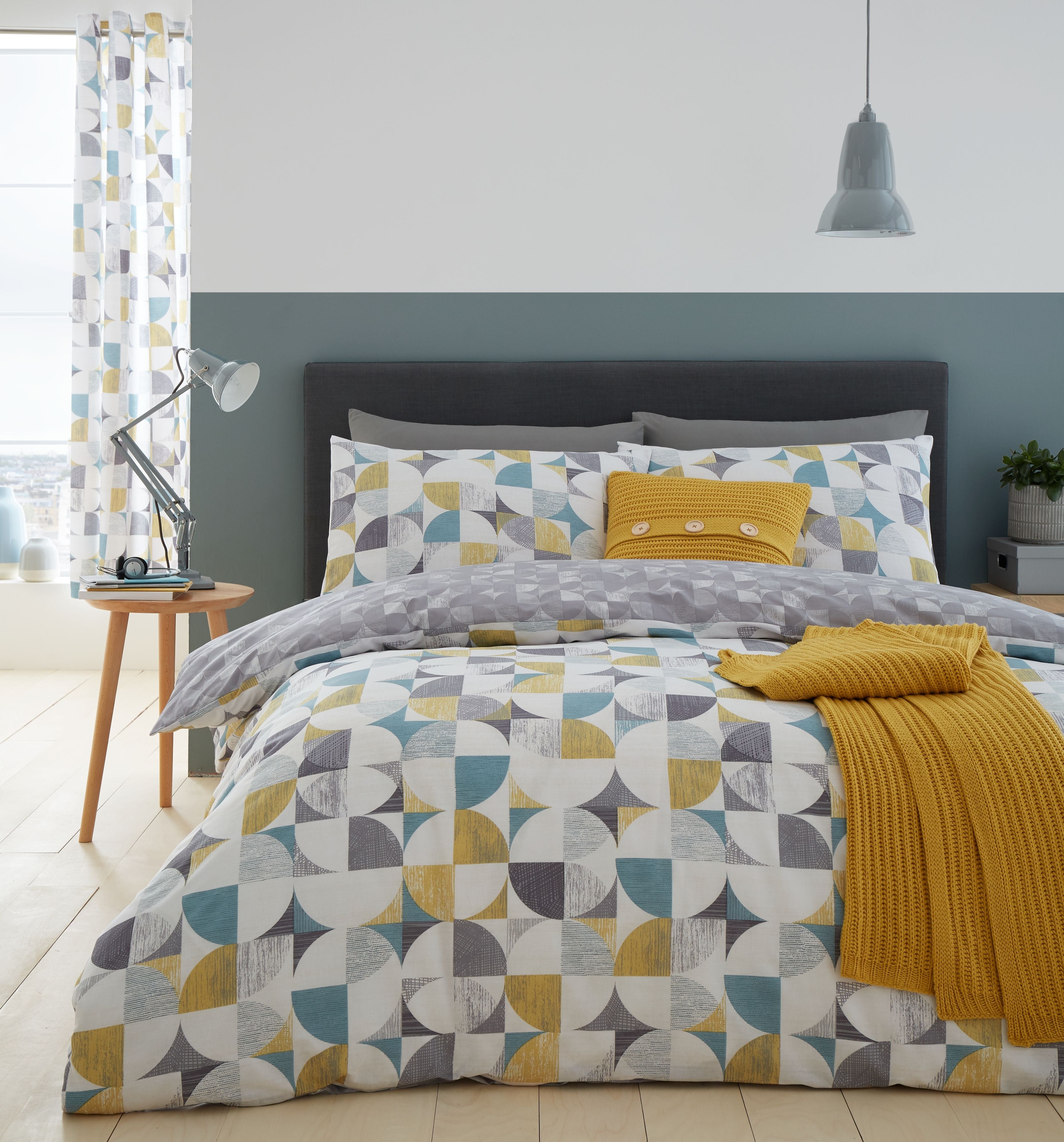 Conjunto de fundas nórdicas reversibles con círculos retro, multicolor