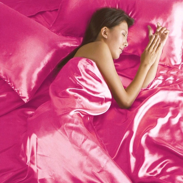Juego de Cama de Satén de 6 piezas, Fucsia