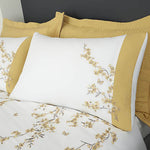 Flores Bordadas, Juego de Funda de Edredón, Ocre