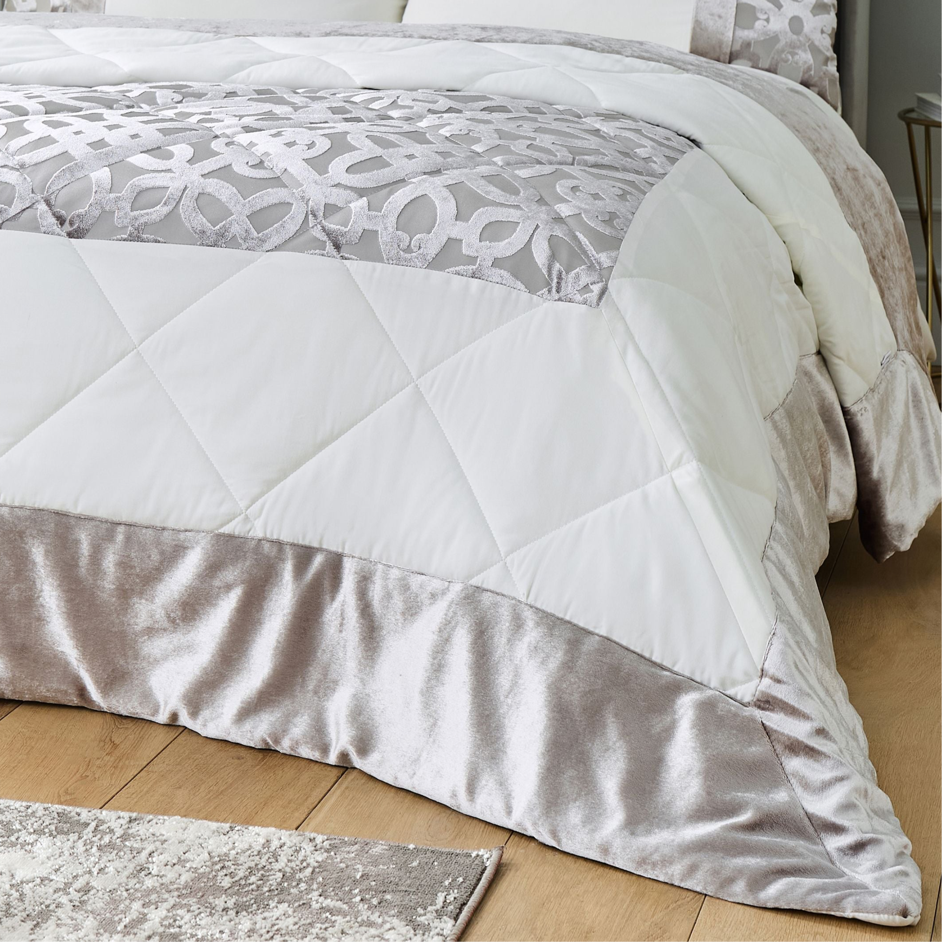 Con una textura hermosa y un tacto suave, esta colcha no solo aportará comodidad a tu dormitorio, sino también un toque de elegancia. El detalle de celosía en el panel de terciopelo devoré es perfecto para crear un ambiente lujoso pero relajado.