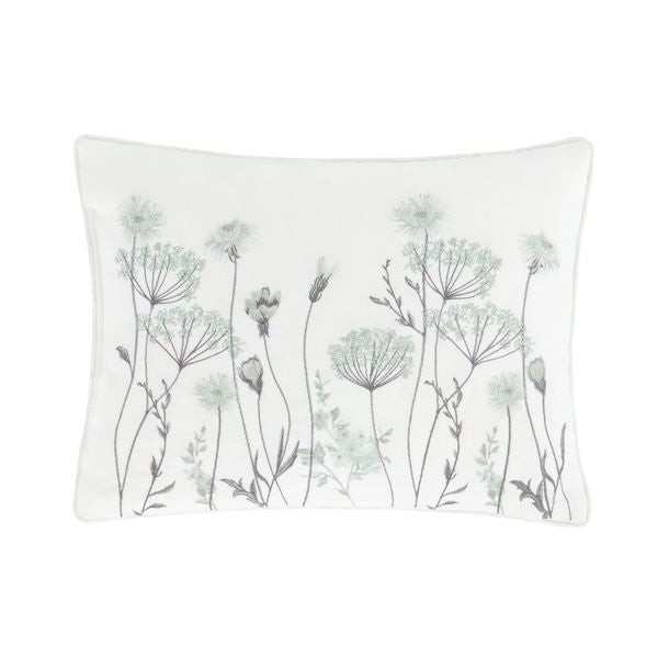 Un perfeccionamiento fresco para cualquier habitación, este cojín boudoir floral intrincadamente bordado sobre una base verde de tendencia ofrece opciones adicionales de estilo relajante.