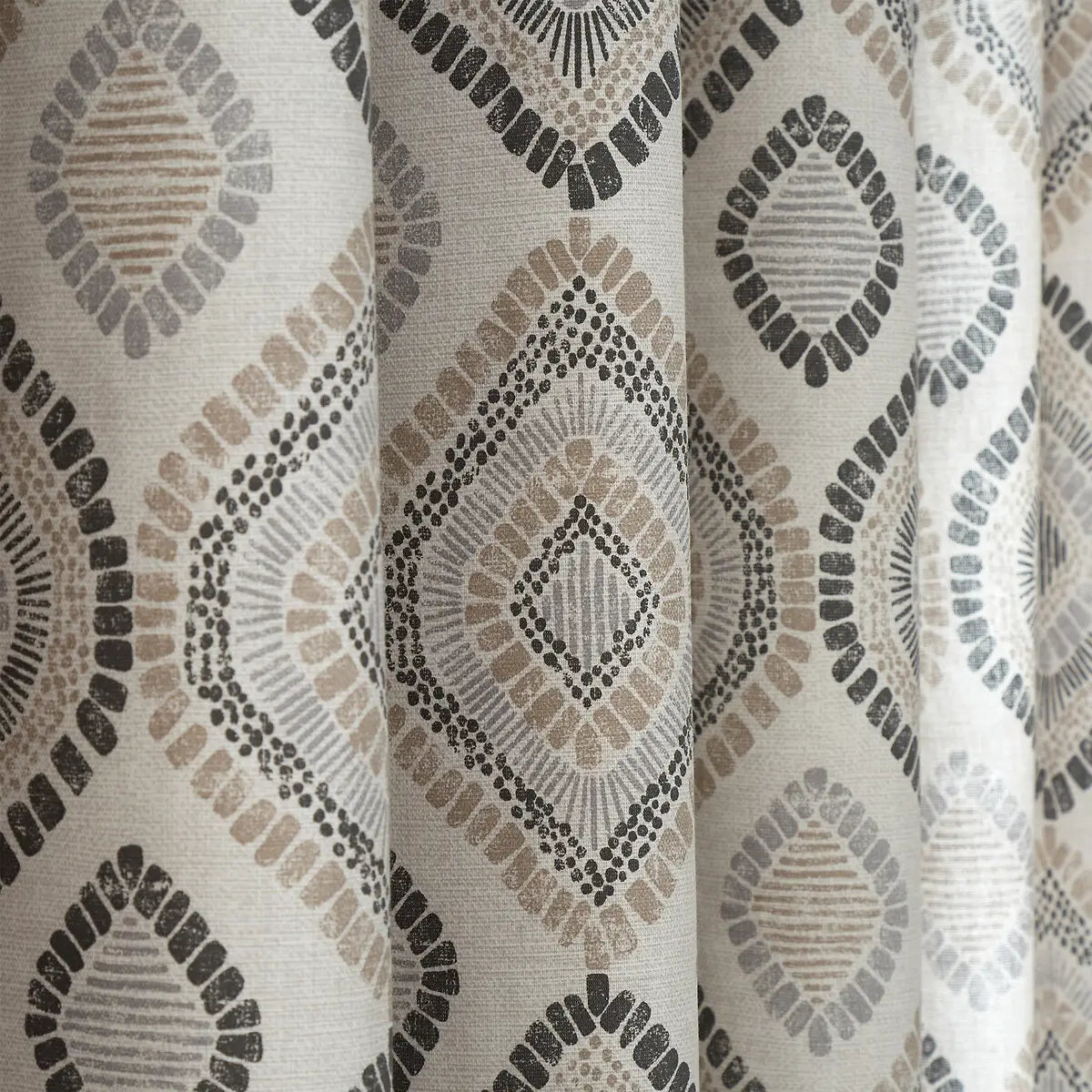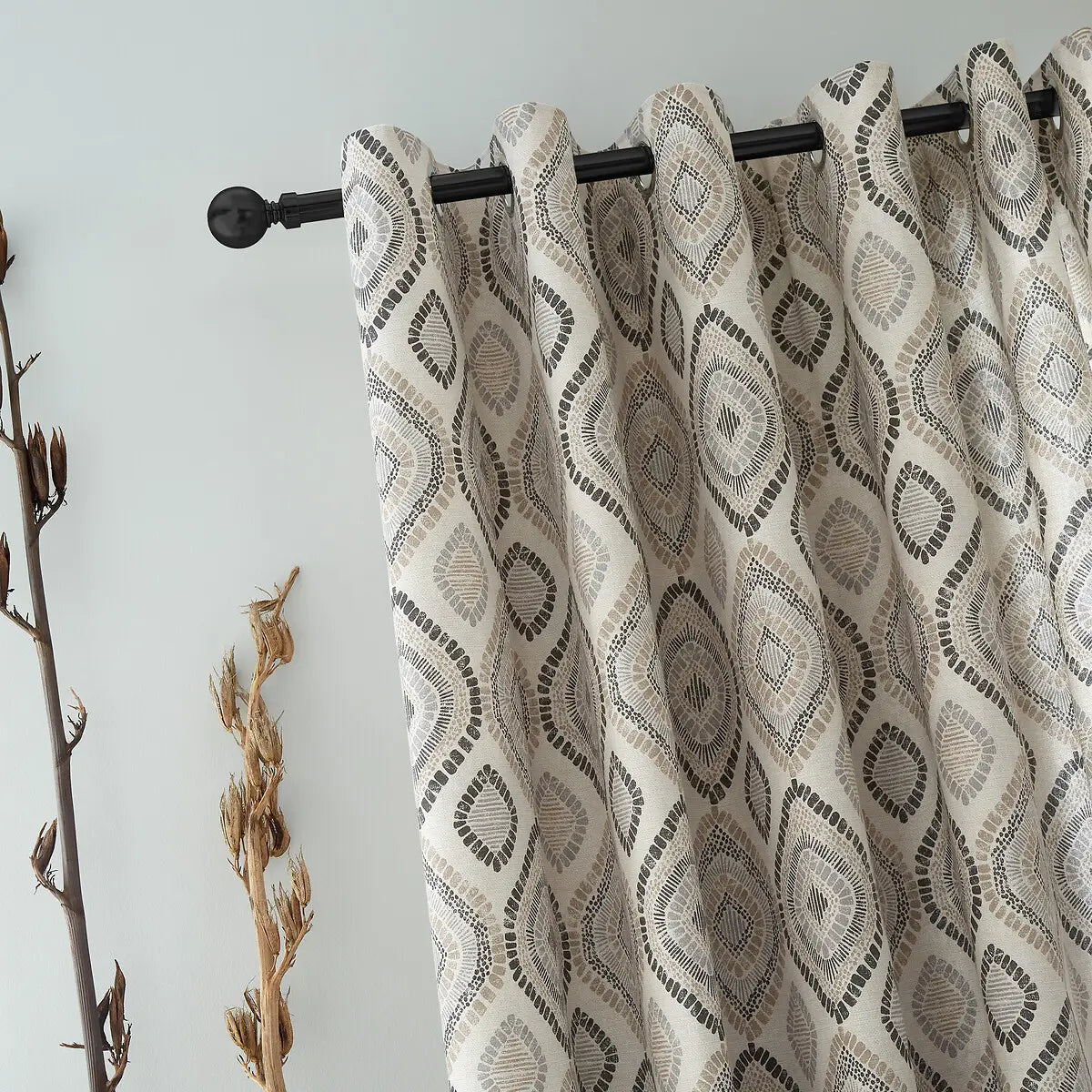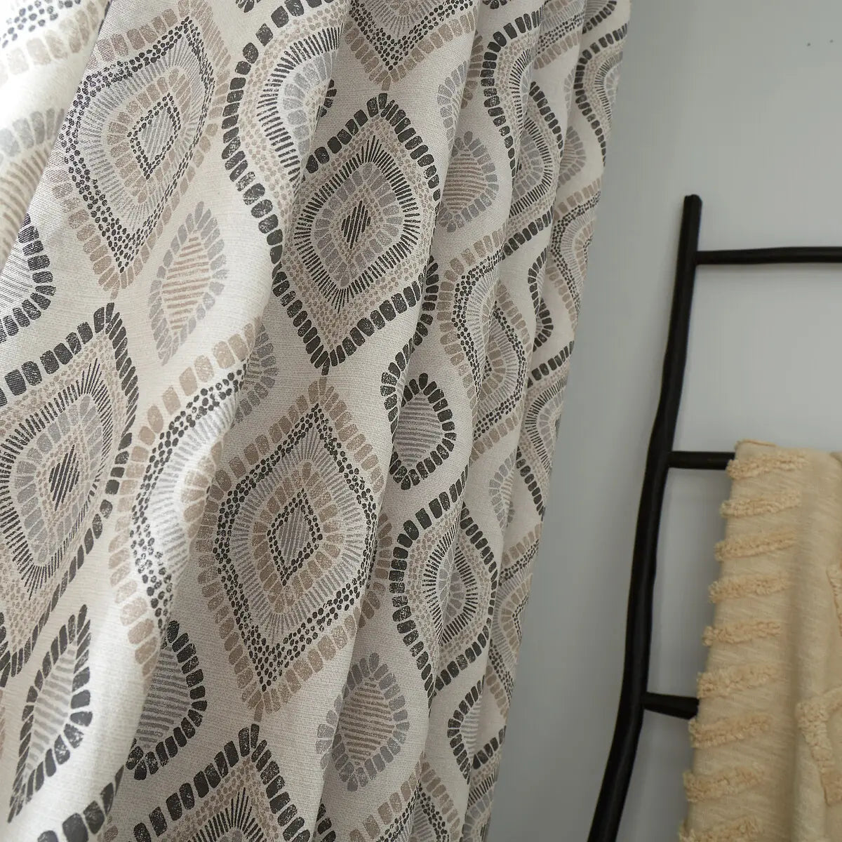 Con un diseño de estilo casual inspirado en técnicas de trazado artesanal y un llamativo forro interior con estampado de piñas y elefantes, estas cortinas con estampado de diamantes son perfectas para vestir cualquier ventana con estilo.
