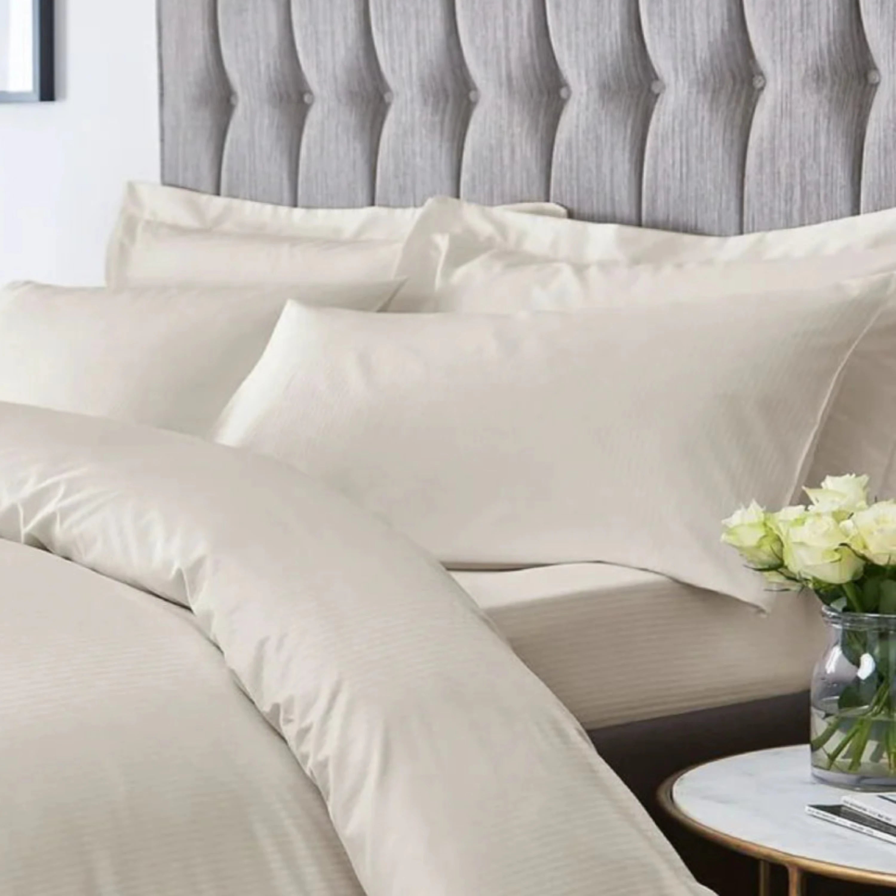 Lovingly crafted from our comfortable and easy-care, cotton-blend fabric. Add a subtle touch of elegance with the luxurious satin stripe plain dye - a sleek design perfect for any bedroom.