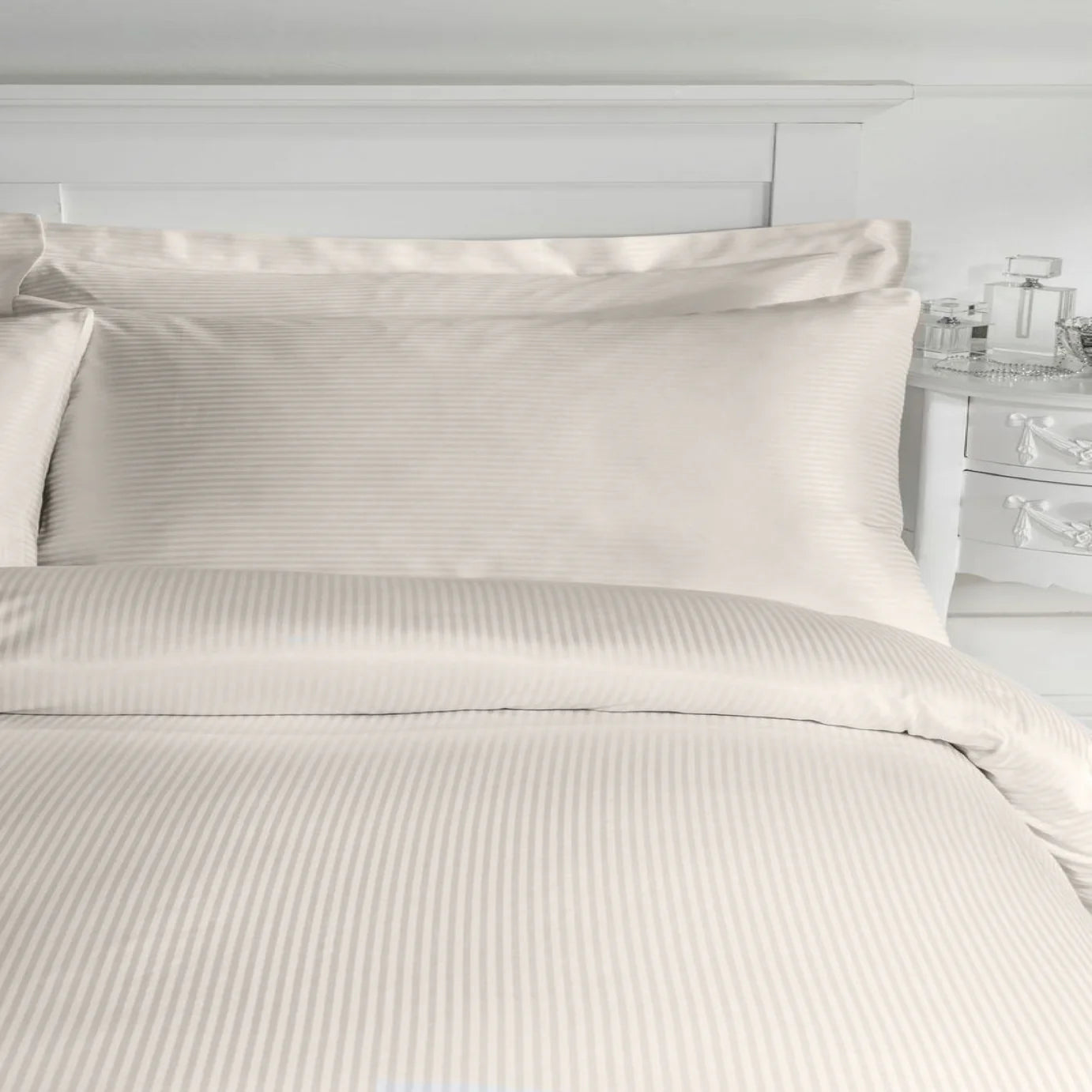 300 Thread Count Satin Stripe Oxford Pillowcase Pairs, Cream