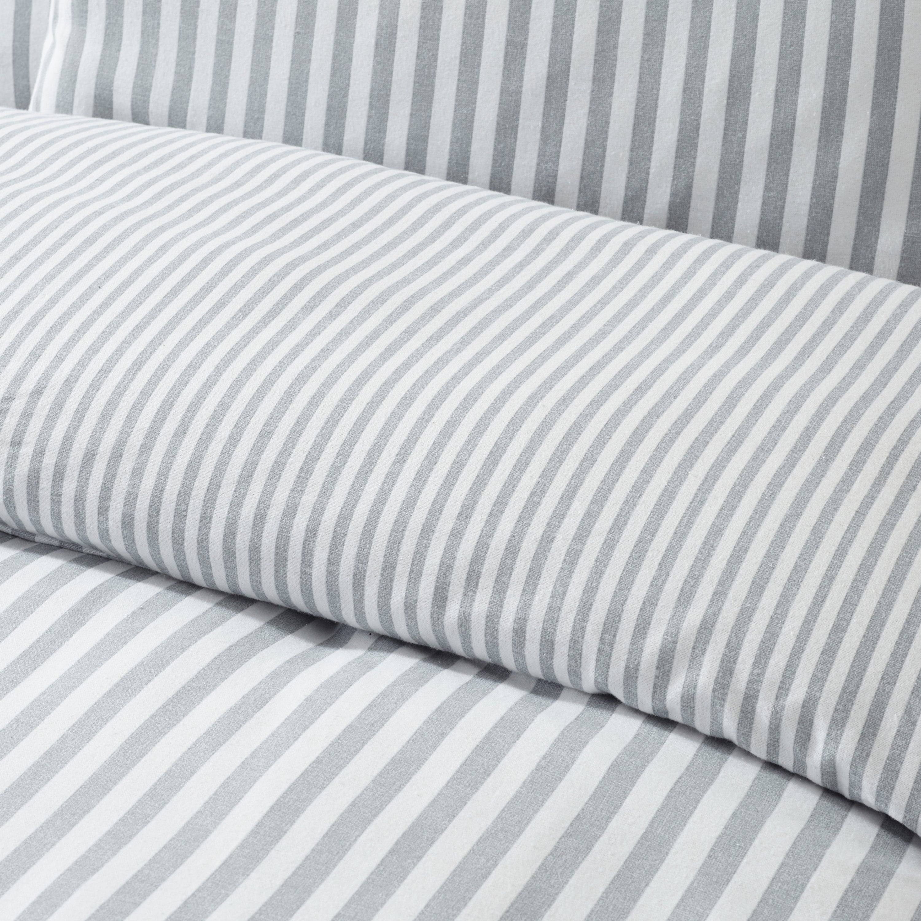 Brushed Cotton Stripe Duvet Cover Set, Silver
