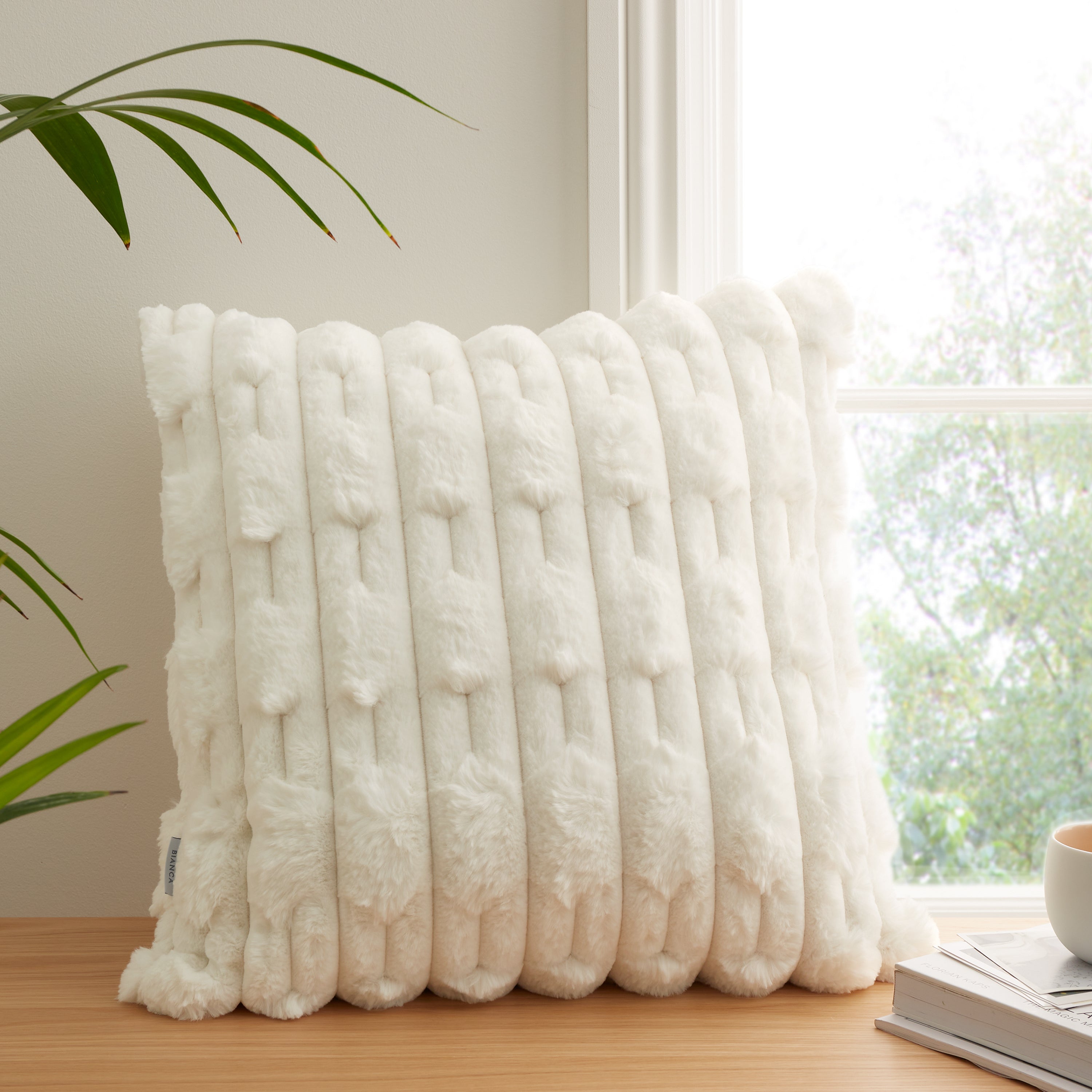 The epitome of comfort and elegance, this sumptuously soft large size cushion is crafted from luxuriously warm faux fur and finished with an intricate carved texture, ideal for adding an indulgency and comfortable look to your home decor. The filling is 100% Duck Feather.