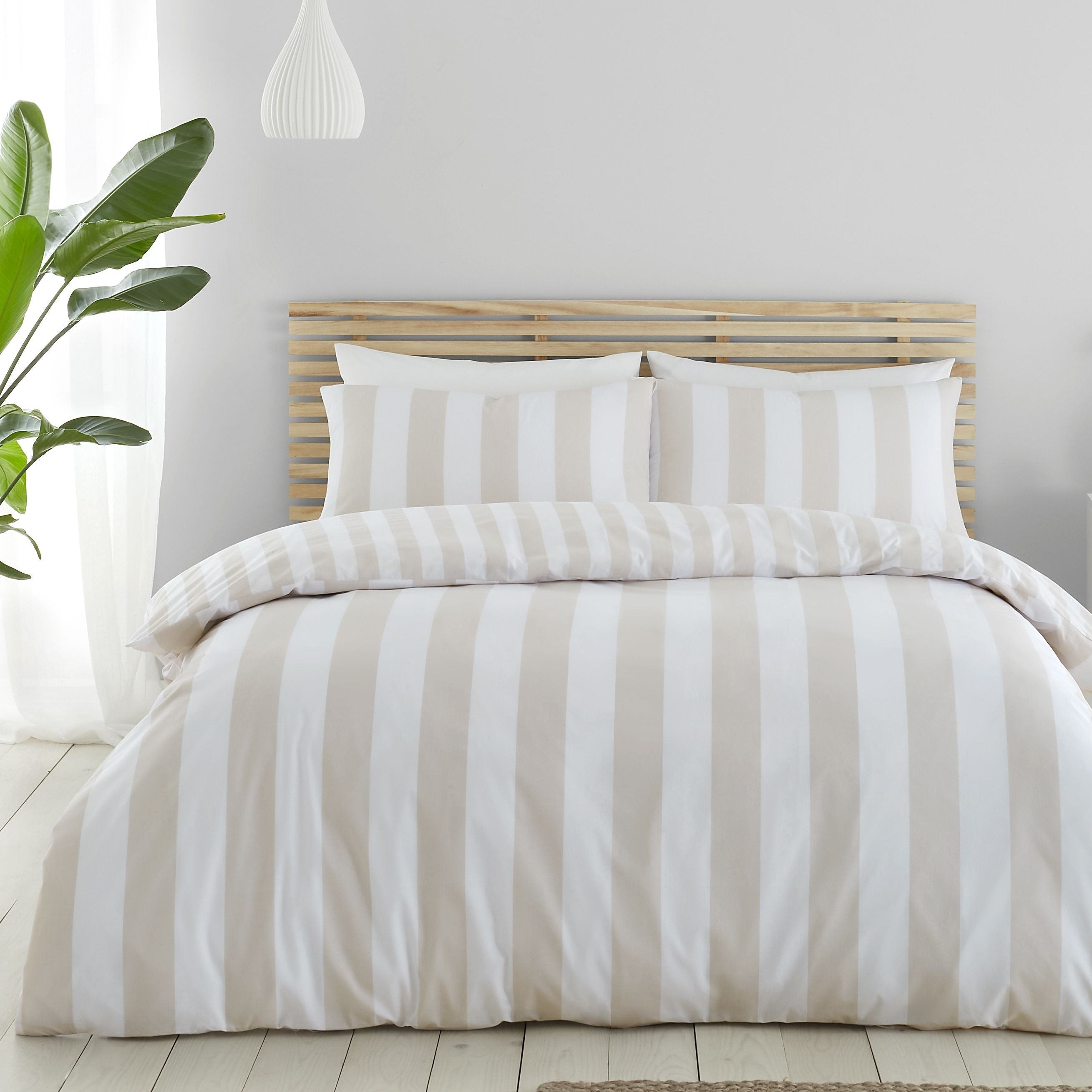 Cove Stripe Reversible Duvet Cover Set, Natural