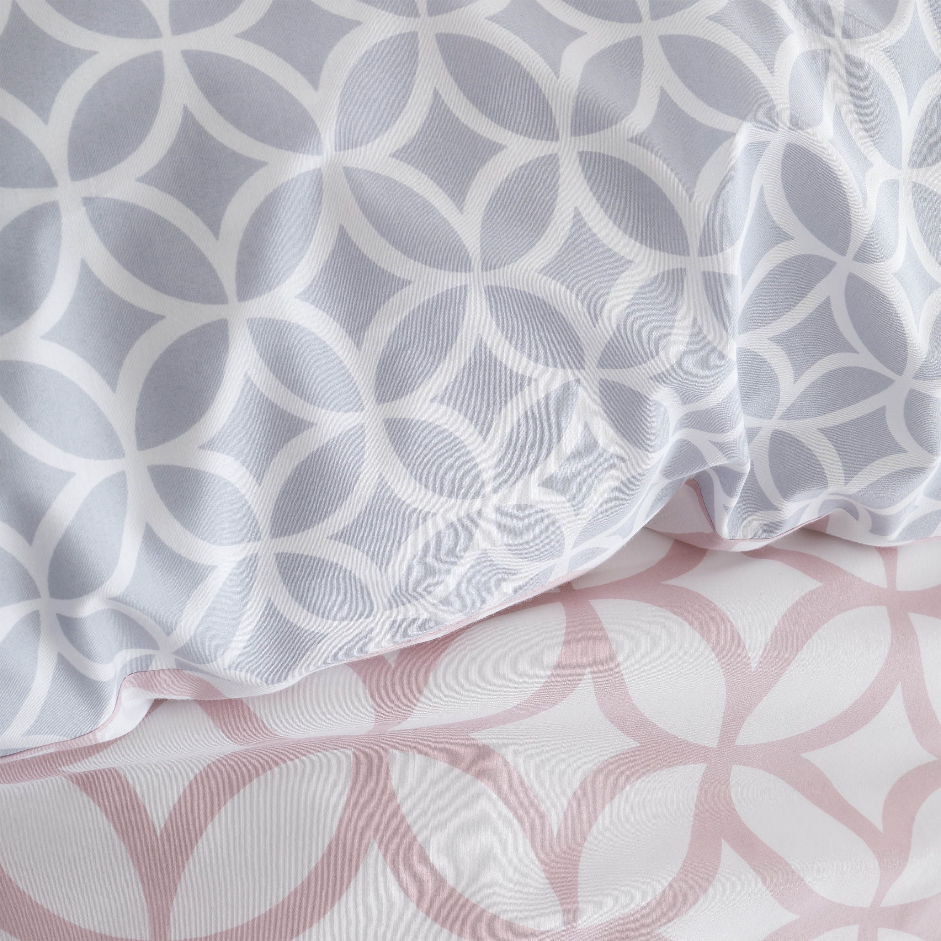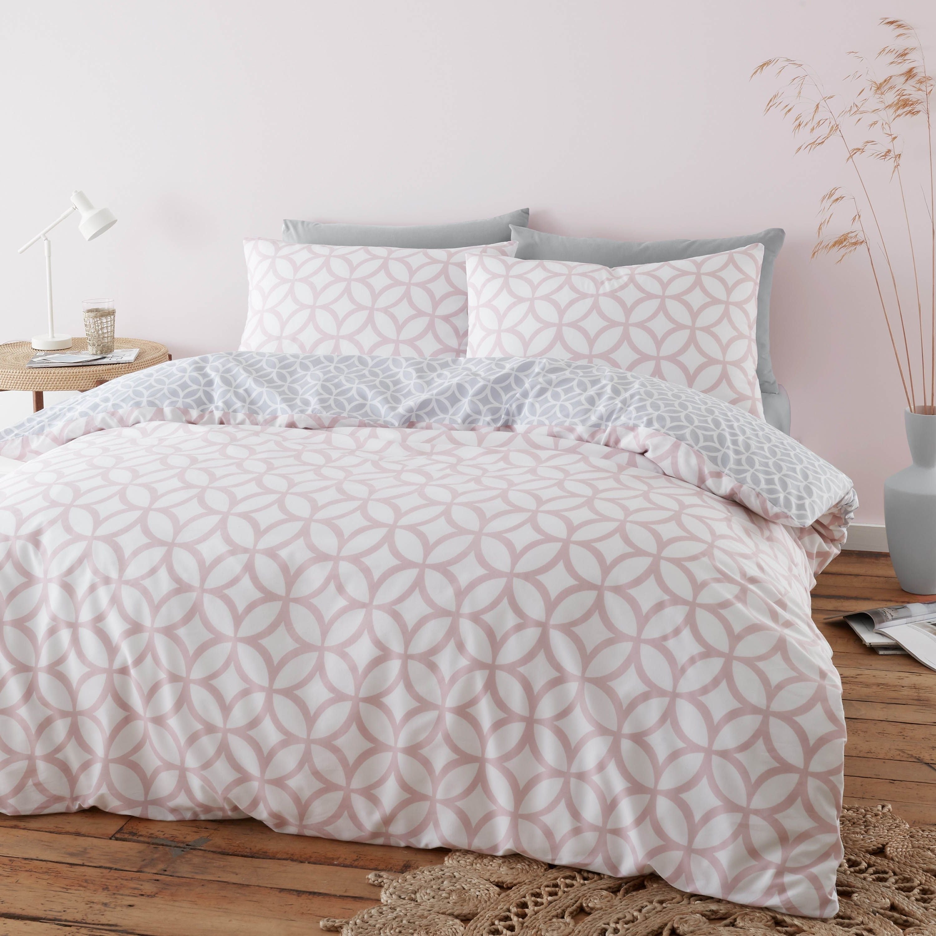 Geo Trellis Reversible Duvet Cover Set, Pink/Grey