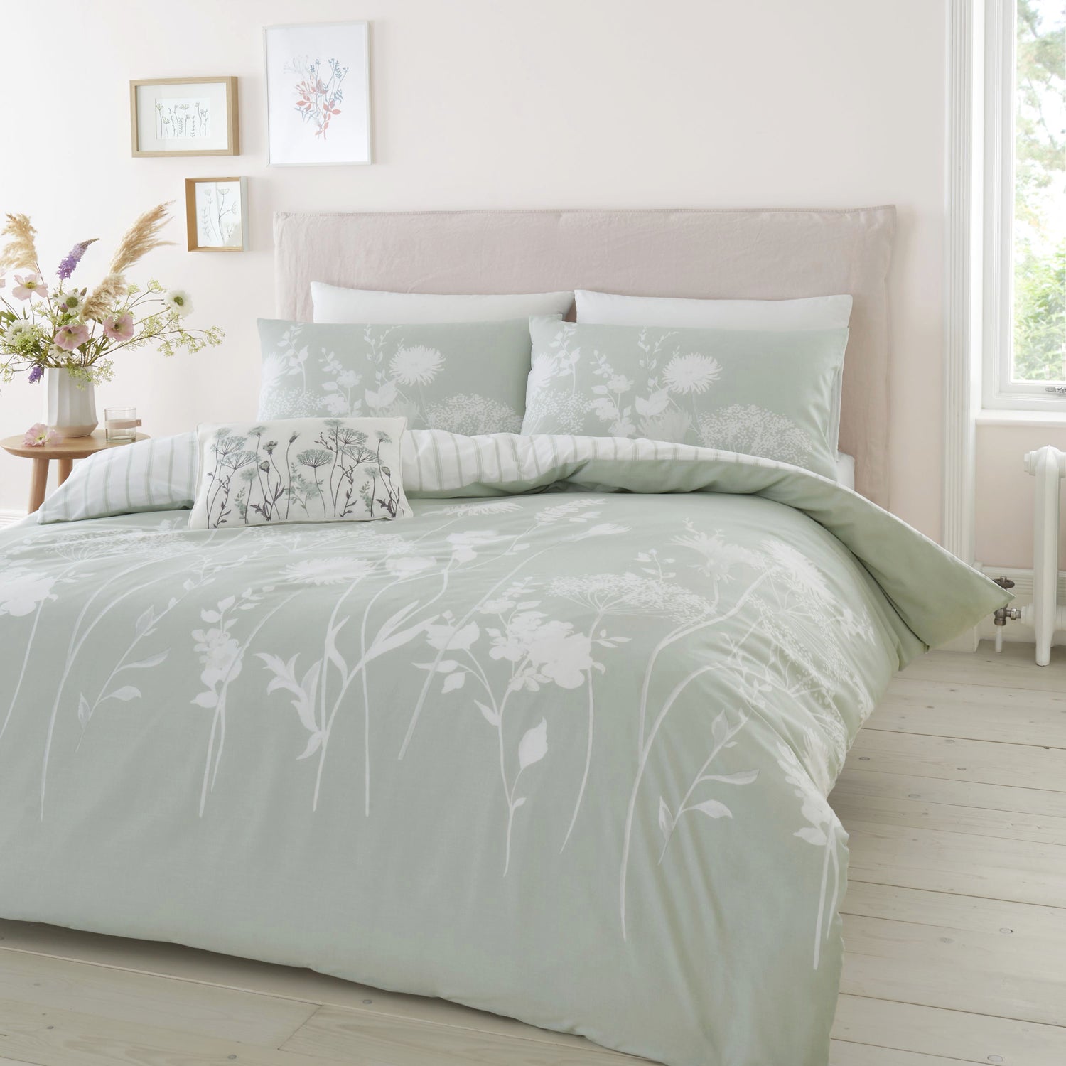 Meadowsweet Floral Reversible Duvet Cover Set, Green
