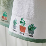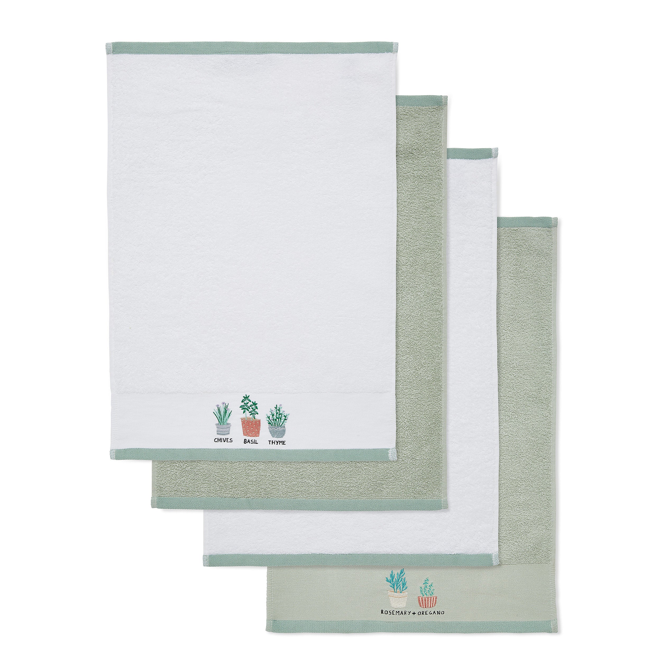 Mixed Herbs Pack of 4, Tea Towels (Green and White)