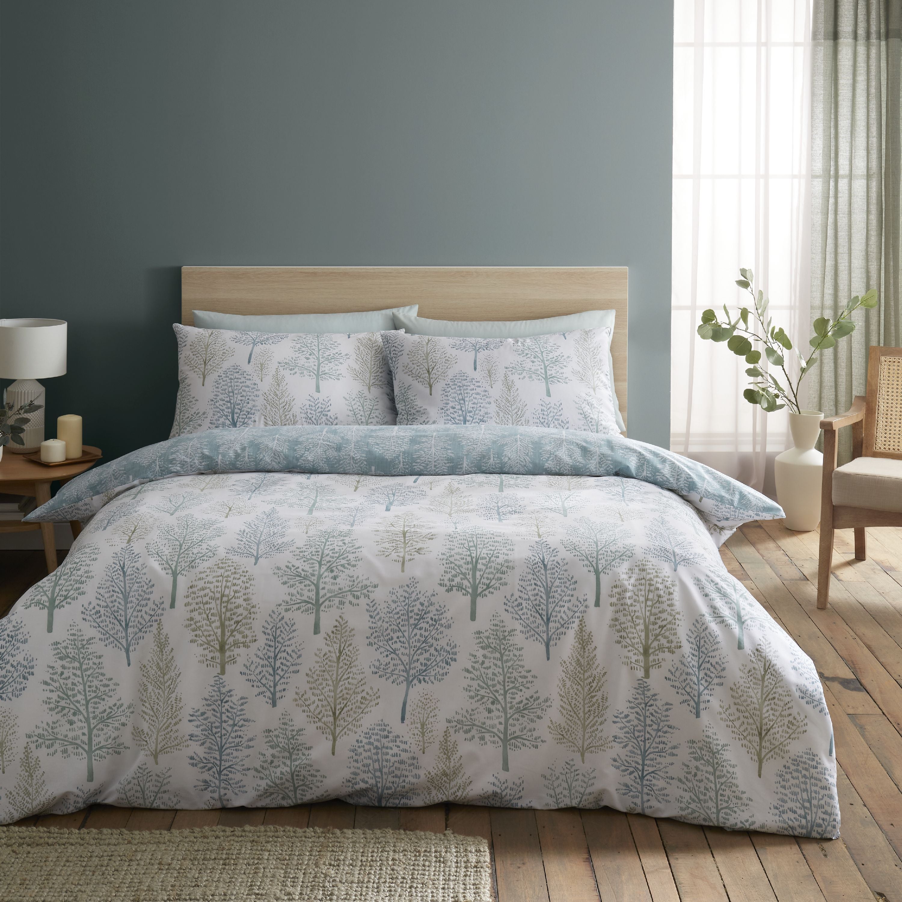 Take a trip into the wilderness with evergreen tree motifs. This bedding set comes with a complementary tonal mini tree reverse for truly interchangeable styling. Created from easy-care and durable polycotton fabric, it's perfect for everyday use.